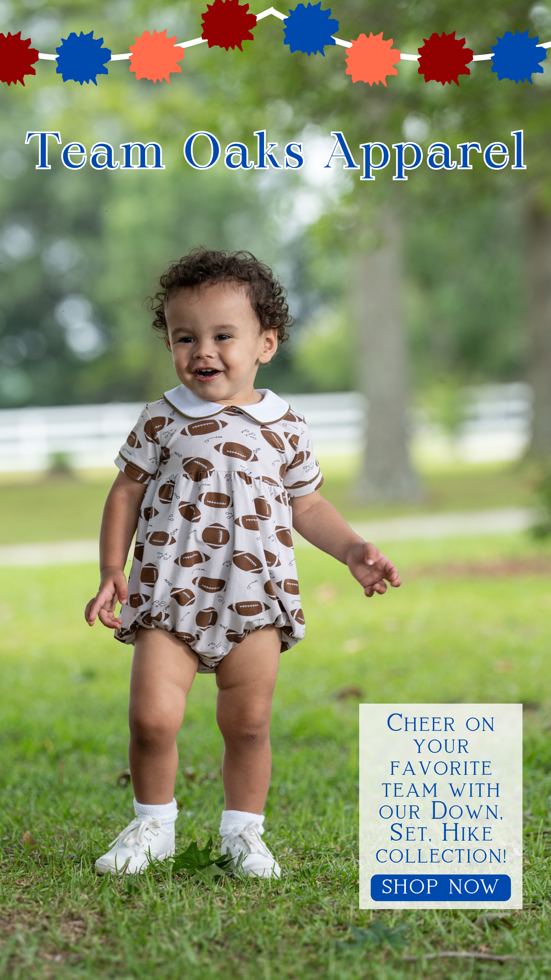 View allDiscover Oaks Apparel’s Back to School and Fall Collection featuring classic Southern styles, smocked dresses, plaid sets, and timeless children’s outfits. Perfect for family photos, first day of school, and game day, our heirloom-quality pieces are designed for comfort, durability, and picture-perfect moments this season. Shop our fall children’s clothing today, including back to school outfits, smocked dresses, plaid dresses, and game day outfits for kids.