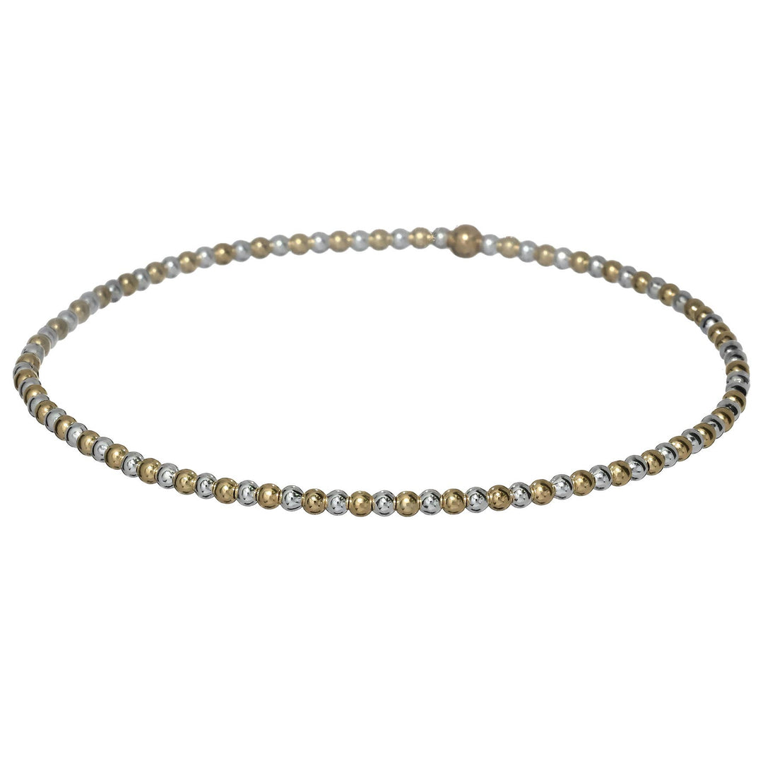Classic "2 TONE" Anti-Tarnish Stretchy Bead Bracelets: 2mm / Gold Filled & Sterling Silver / Stretchy 6.5"