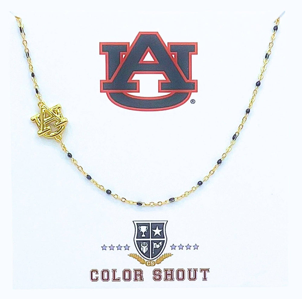Color Shout - The College Logo Necklace: Side Set Logo on Enamel Bead Necklace: Auburn