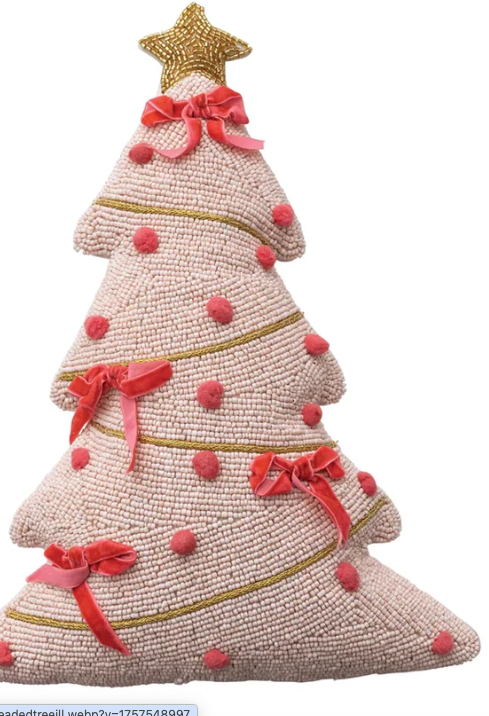 Cotton Tree Pillow w/ Embroidery Pink /Gold