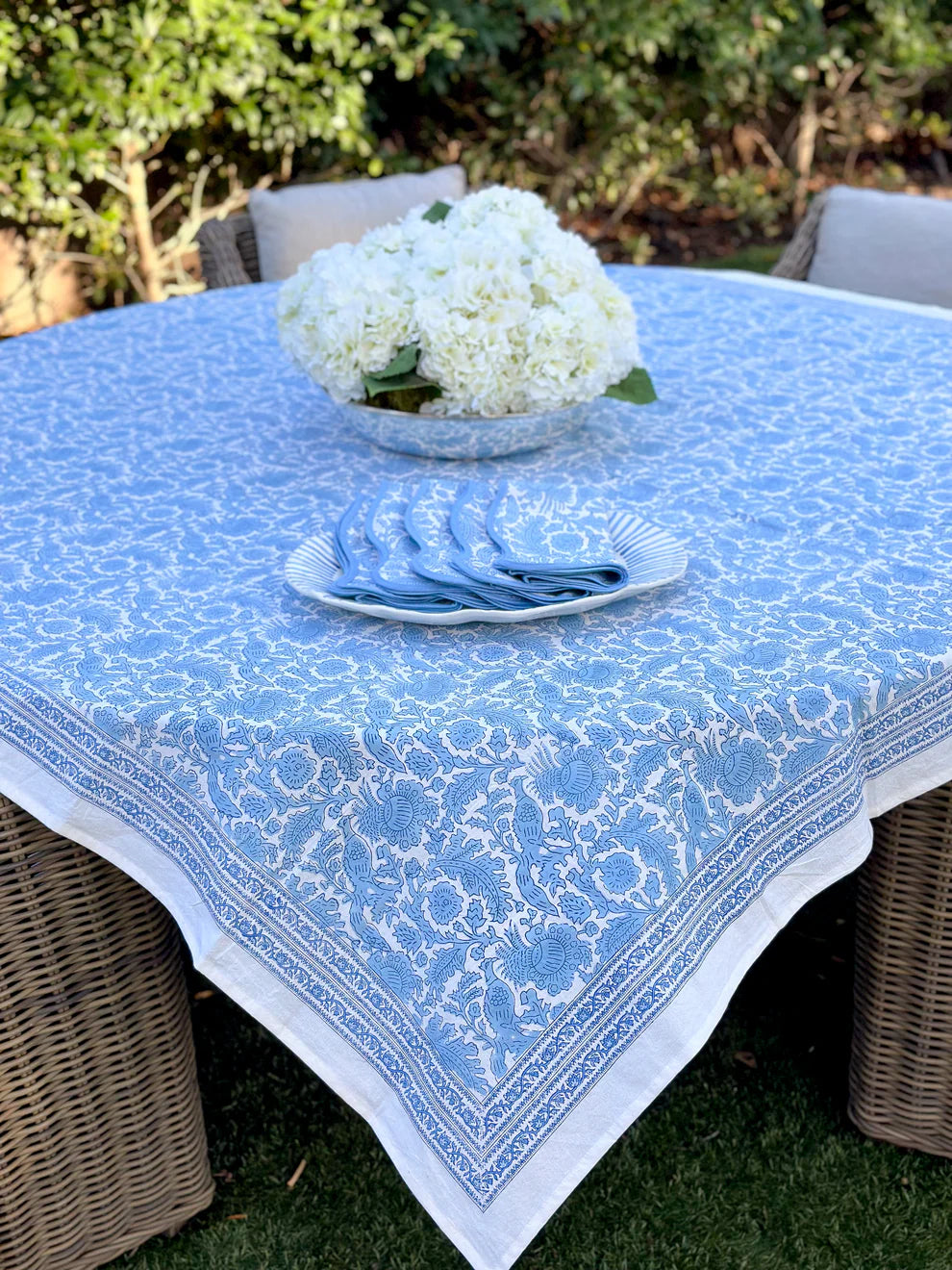 Don Lino Blue print tablecloth, 72 x 108 in