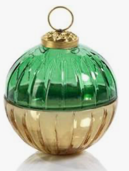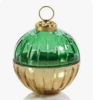 ETCHED GLASS ORNAMENT BALL SCENTED CANDLE-GRN