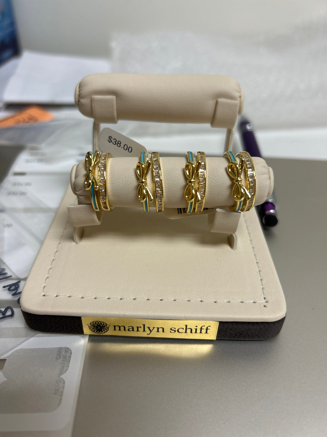 Gold Turquoise Pave and Enamel Bow Adjustable Ring