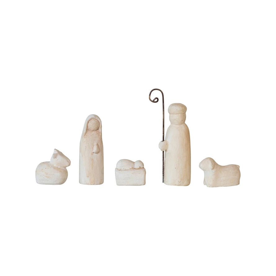 Handmade Paper Mache Holy Family w/ Animals, Cream Color, Set of 5