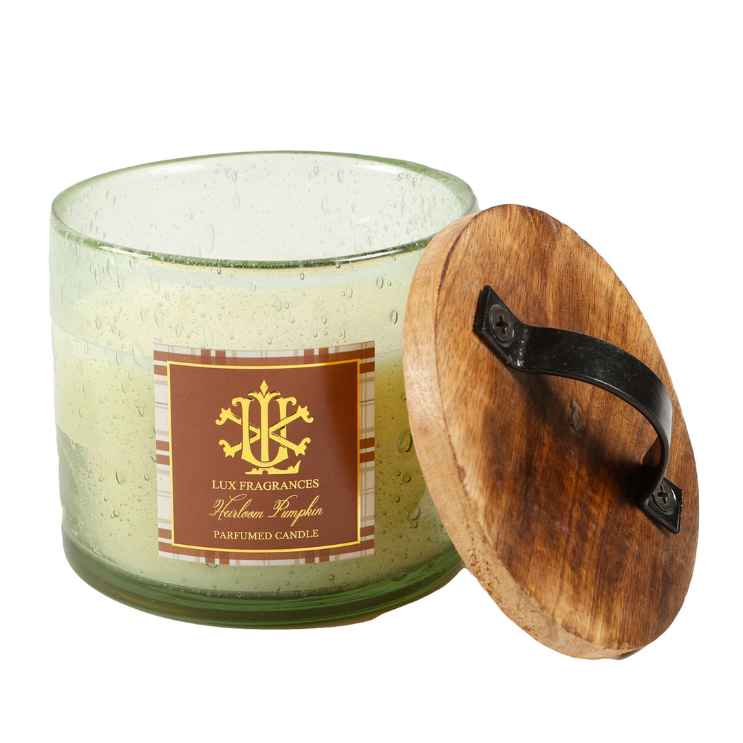 Heirloom Pumpkin in Green Glass with Lid Candle MIN 3
