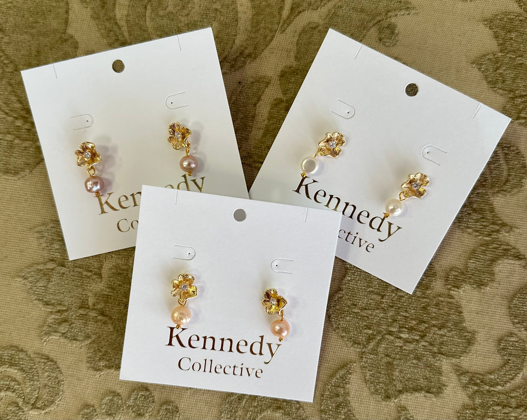 Kennedy Collective Flower pearl drop earring Hypo Stainless with 14k over lay