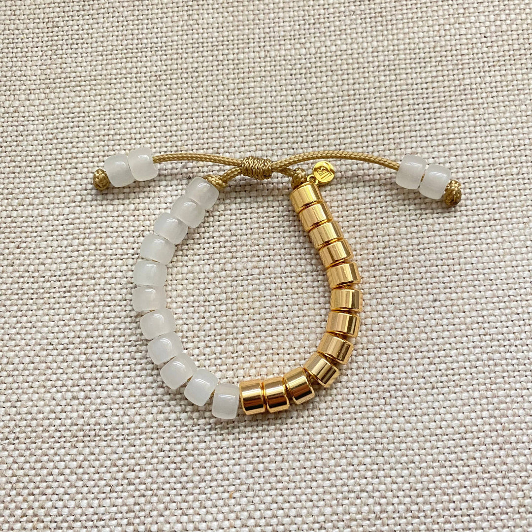 LB Beadz - Primrose • Gemstone Beaded Bracelet: Gold cord/beads