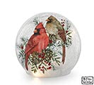 LIGHT UP GLASS GLOBE WITH TWO CARDINALS