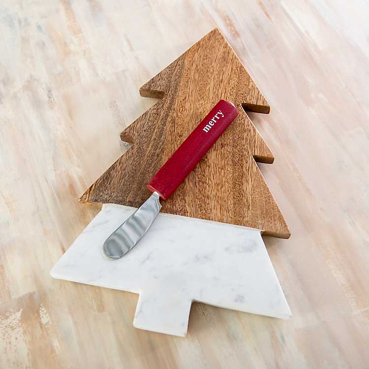 Marble and Wood Tree Serving Board w/ Spreader A/2 Colors