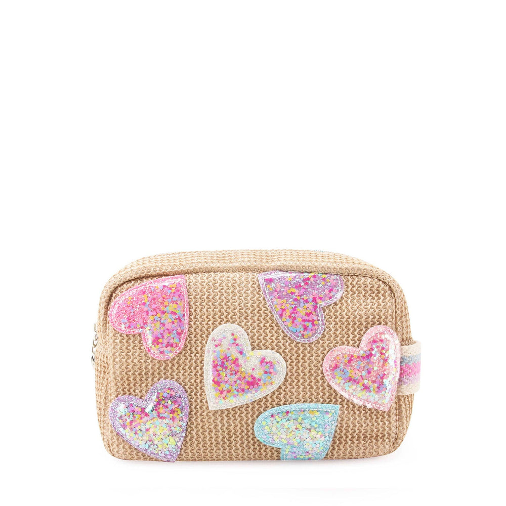 OMG Accessories - Confetti Heart Patched Straw Pouch