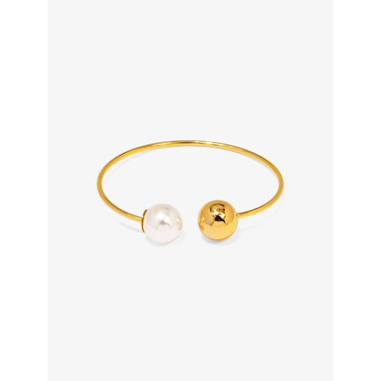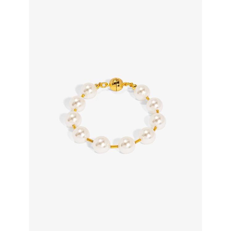 PEARL BEADED BRACELET WITH TUBE SPACERS- GOLD/PEARL
