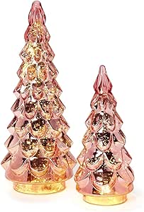 Pink Mercury Glass Finish Light-Up Christmas Trees