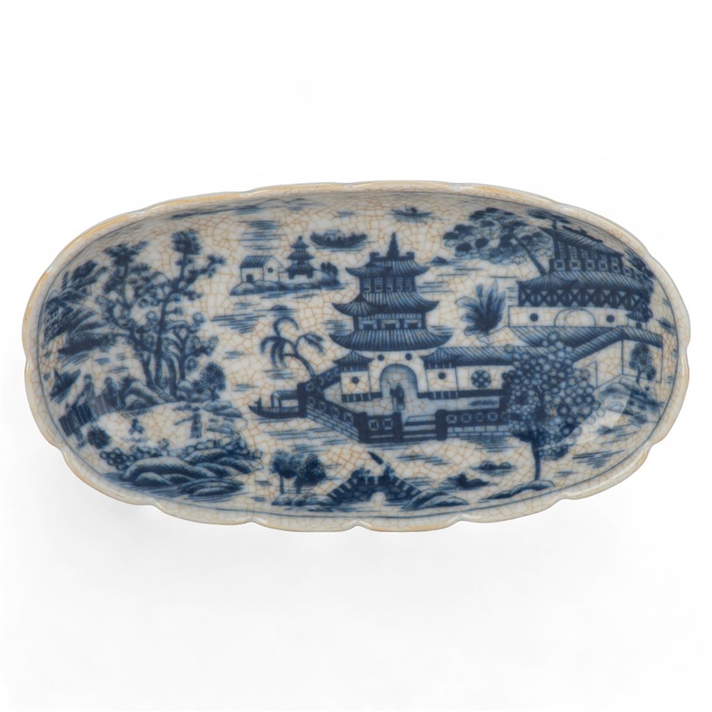 PORCELAIN DISH WITH BRONZE FEET -BLUE WILLOW