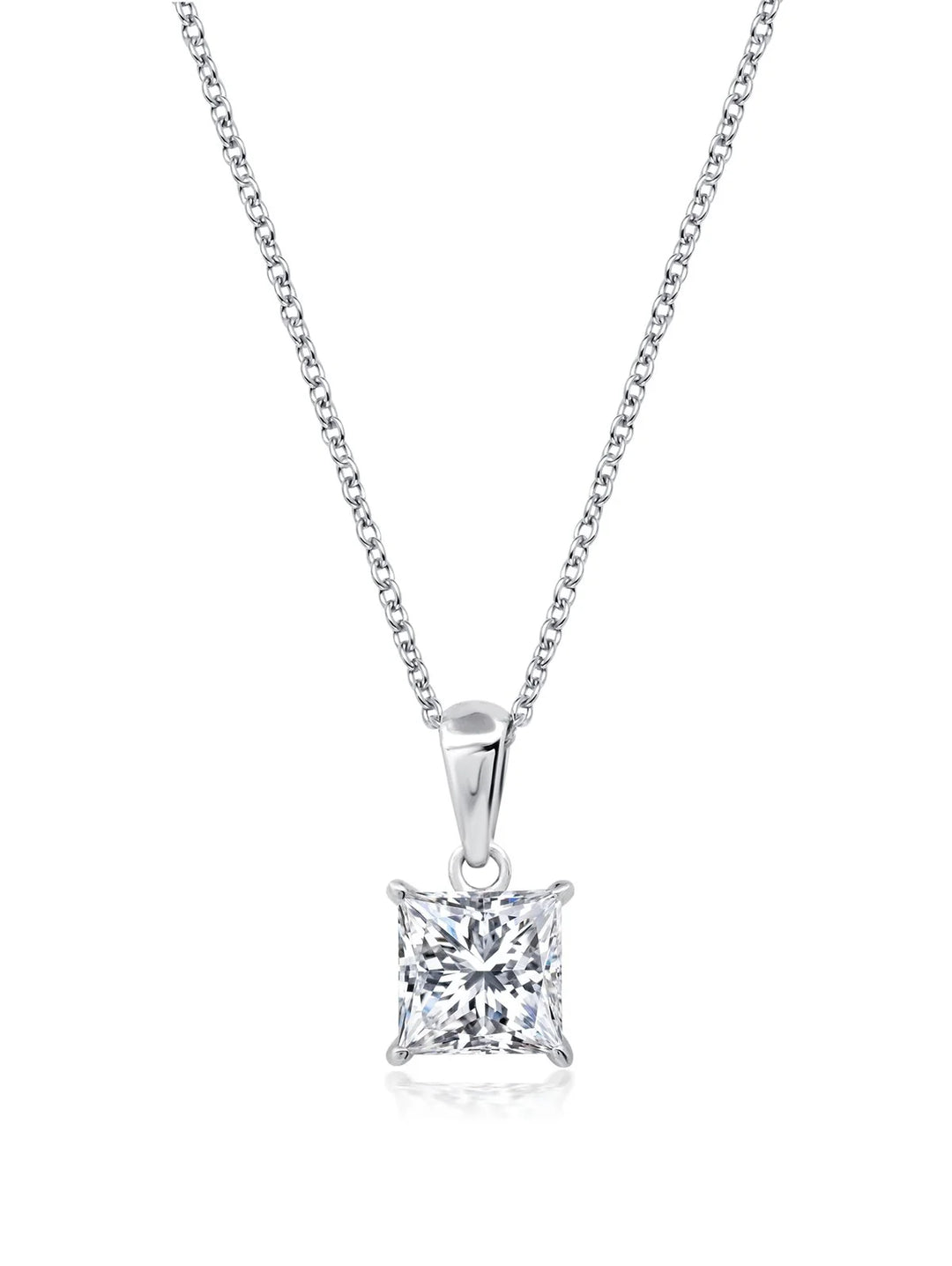 Princess Cut Solitaire Bezel Set Pendant Small Finished in Pure Platinum
