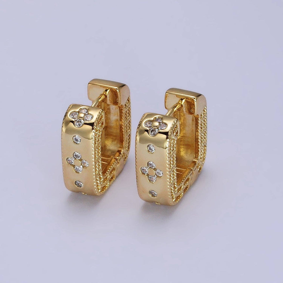 Aim Eternal - 24K Gold Filled Clear Quatrefoil CZ Square Huggies Earrings | AB196