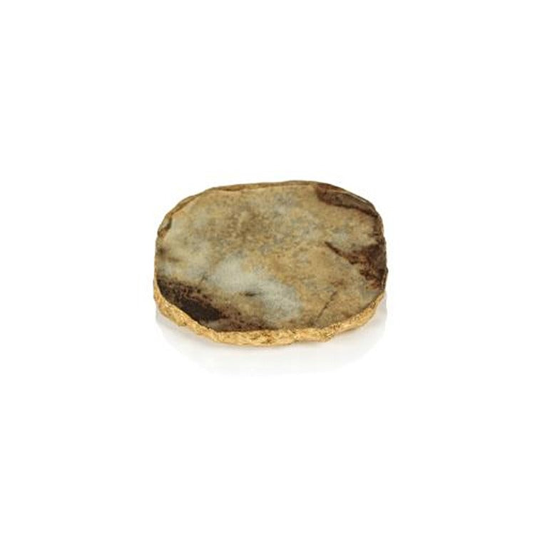 Agate Marble Glass Coaster w/Gold Rim- Brown Tone