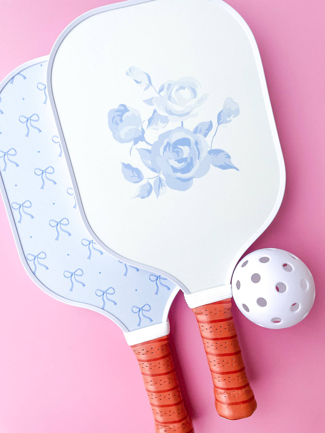 Rock Paper Scissors - Coquette Blue Bow Floral Pickleball Paddle