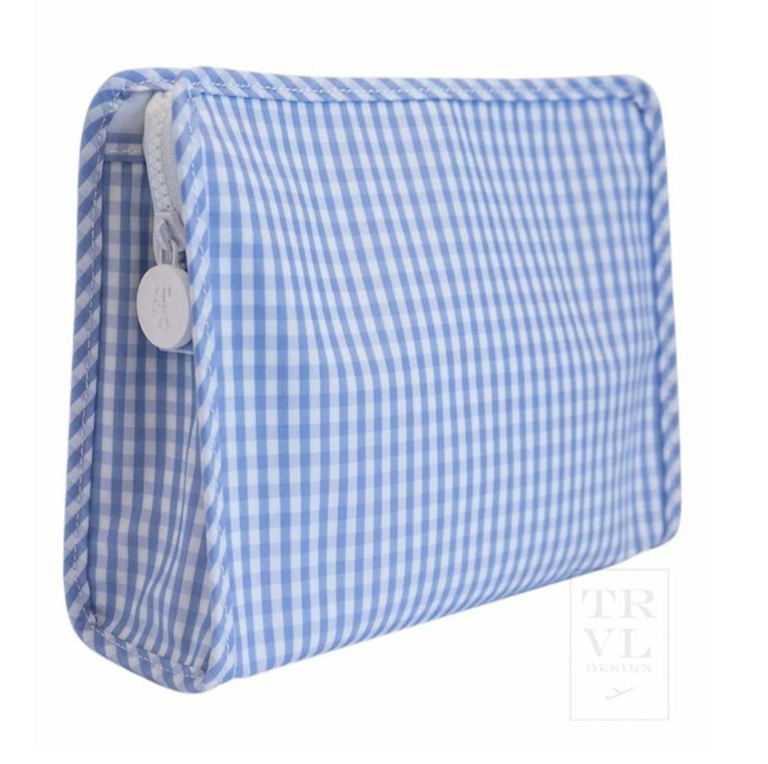 Roadie Medium Zip Pouch - Gingham Sky TSA approved