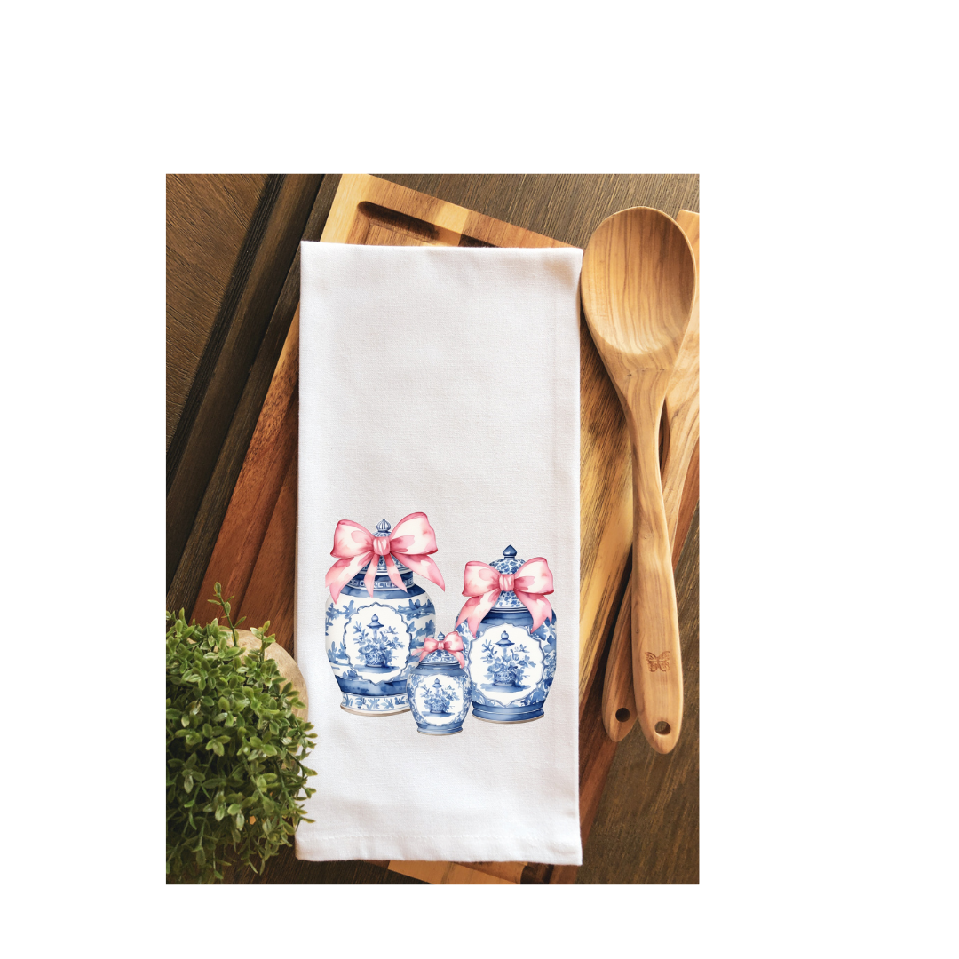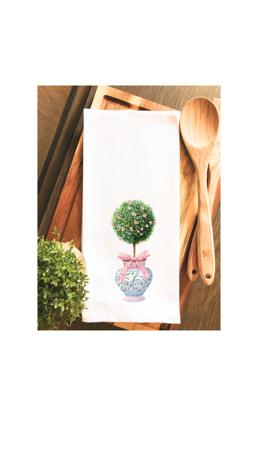 Rouge 225 - Chinoiserie Coquette Ginger Jar Topiary Tea Towel - Hand Tow