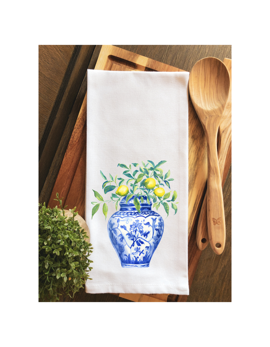 Rouge 225 - Lemon Tree Chinoiserie Ginger Jar Tea Towel - Hand Towel