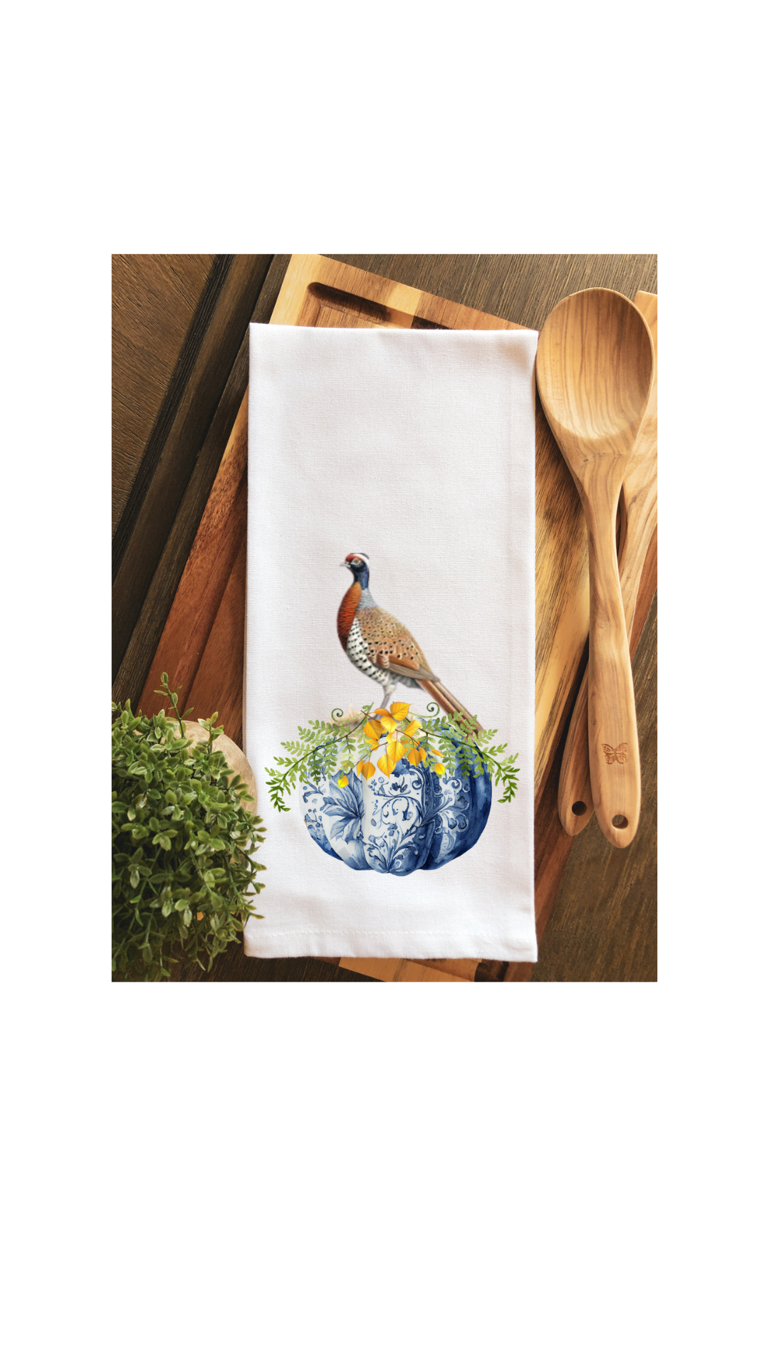 Rouge 225 - Chinoiserie Pheasant Pumpkin Tea Towel - Hand Towel