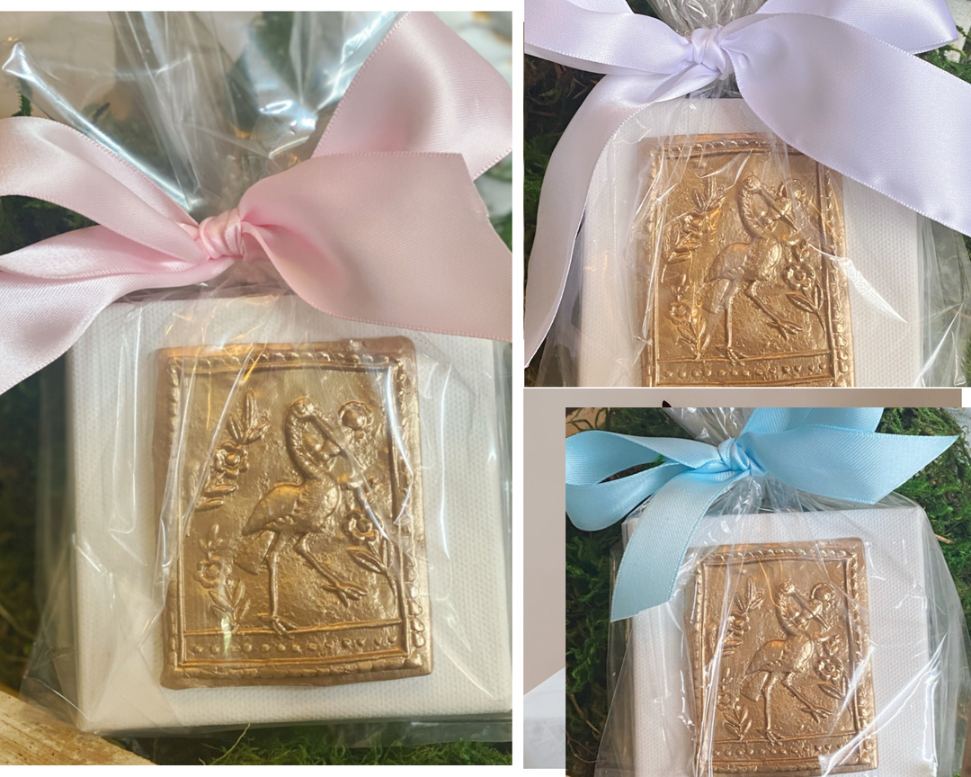 Rouge 225 - Hand Brushed Gold Leaf Stork & Baby Cross: Pink