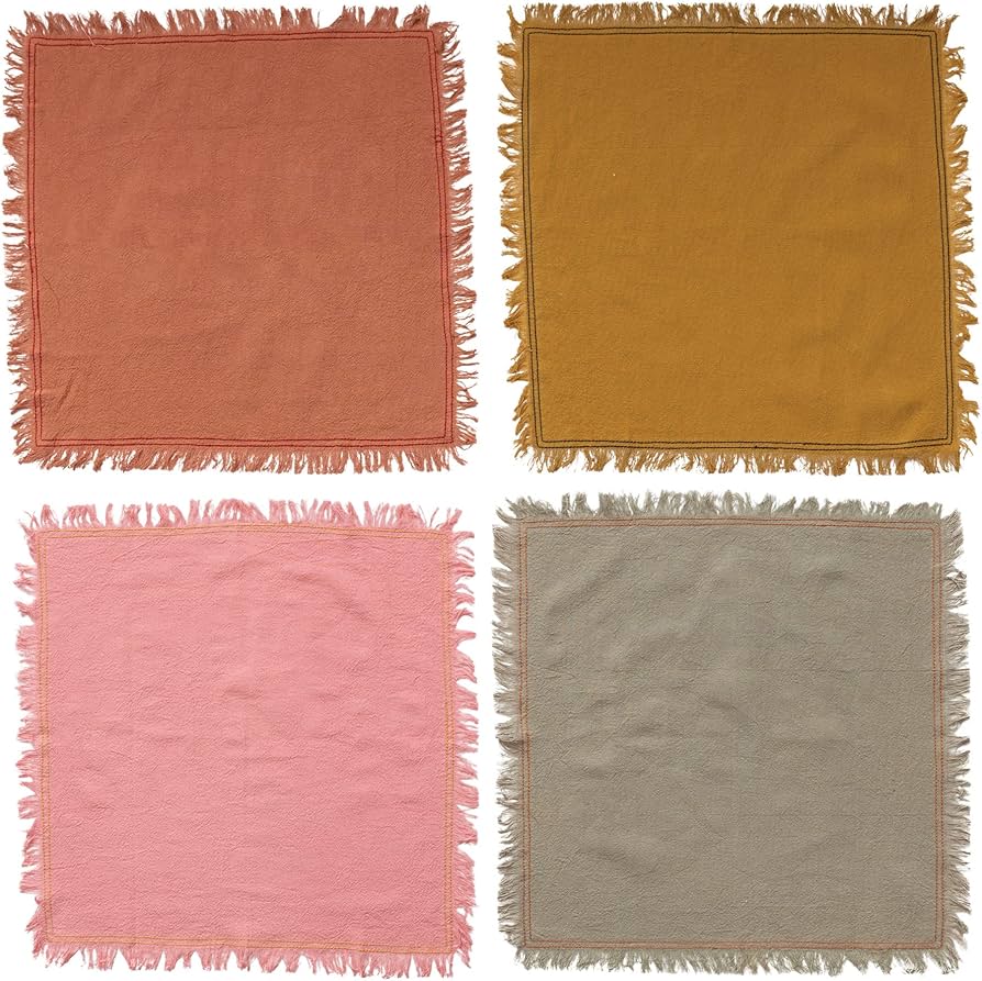 S/4 18" Square Cotton Napkins w Fringe, 4 Colors