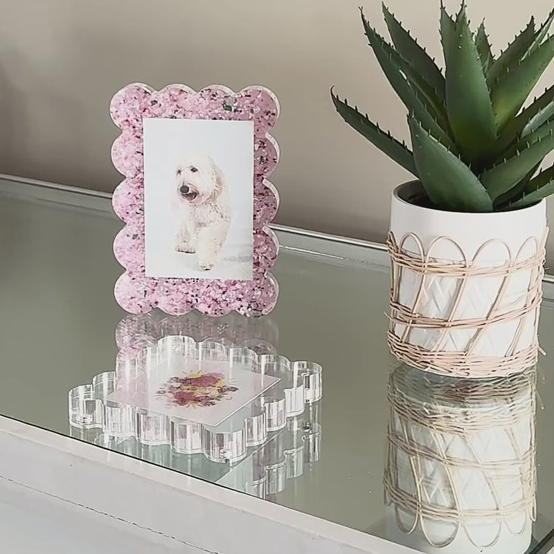 SQUARE PRESSED HOLIDAY FLORAL W/ RED BOW ORNAMENT