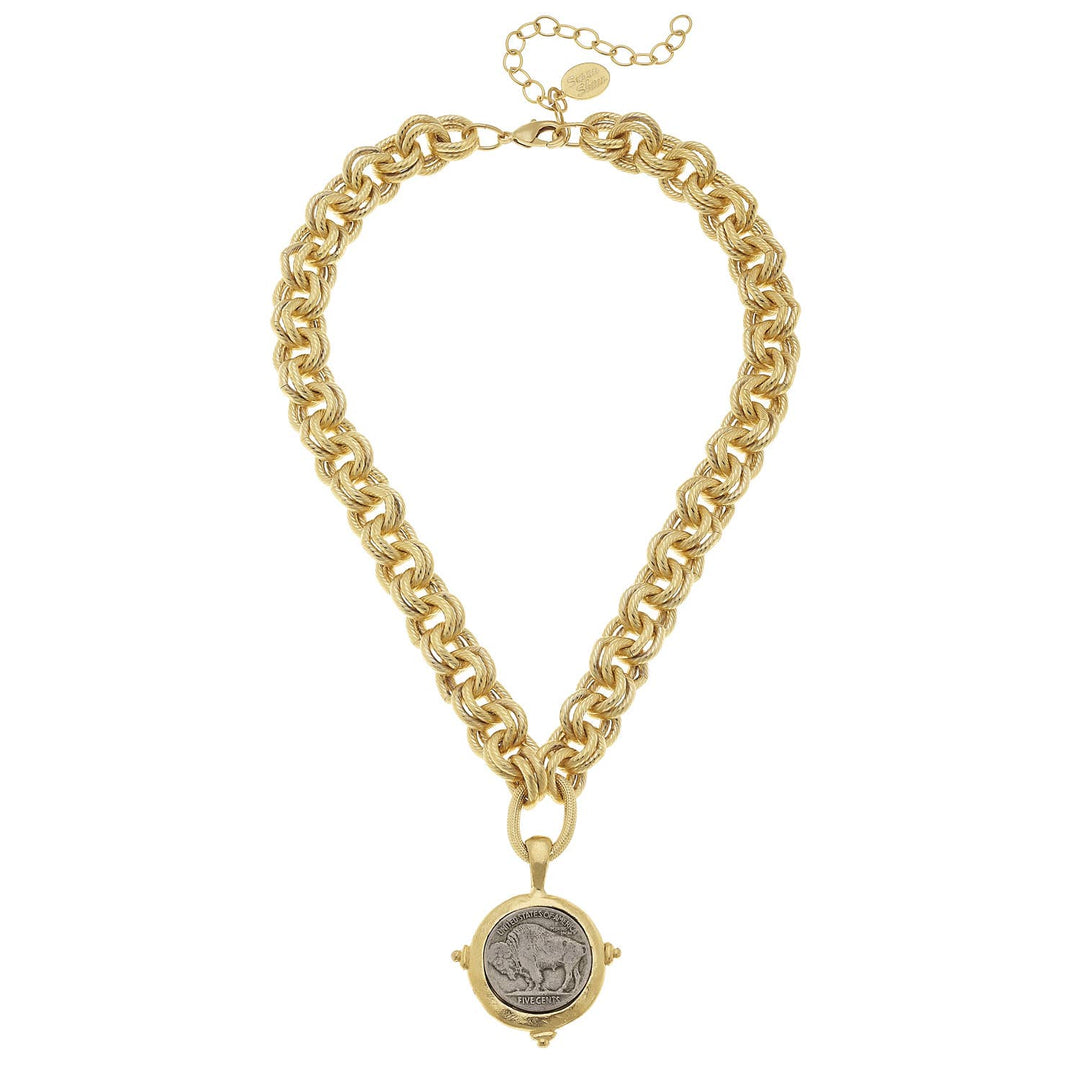 Susan Shaw - Gold and Silver Vintage Buffalo Head Coin Necklace