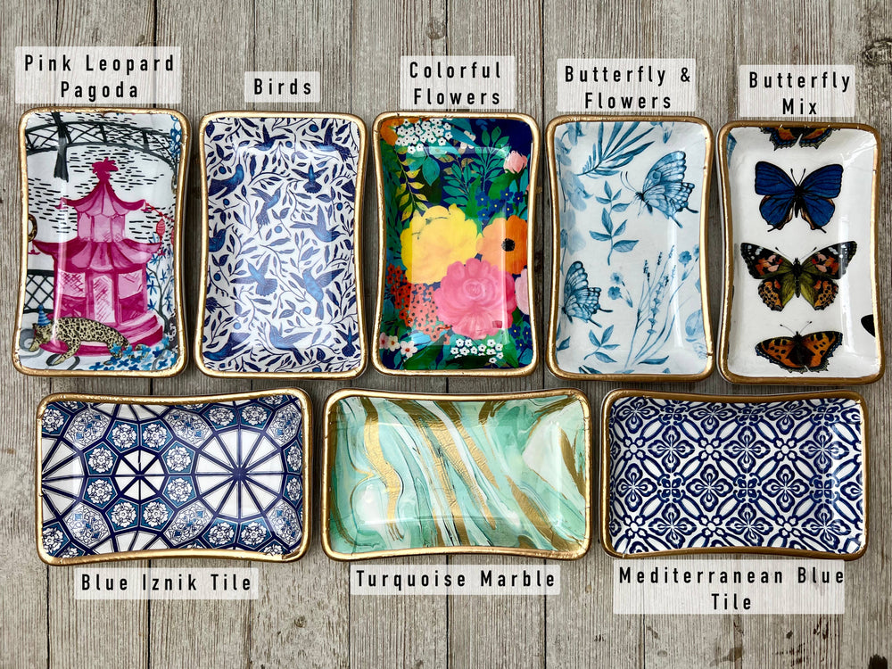 Ten Twenty Six Designs - Ceramic Jewelry tray- large: Floral Birds & Butterflies