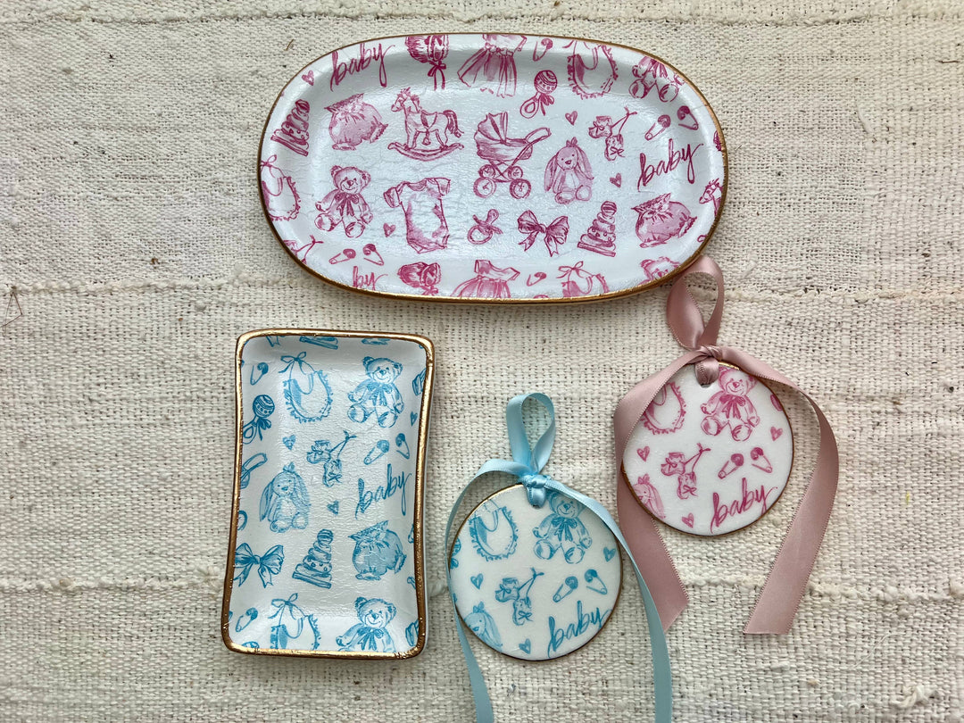 Ten Twenty Six Designs - Baby Gifts- Ornaments & Trays: Pink / Lg Tray