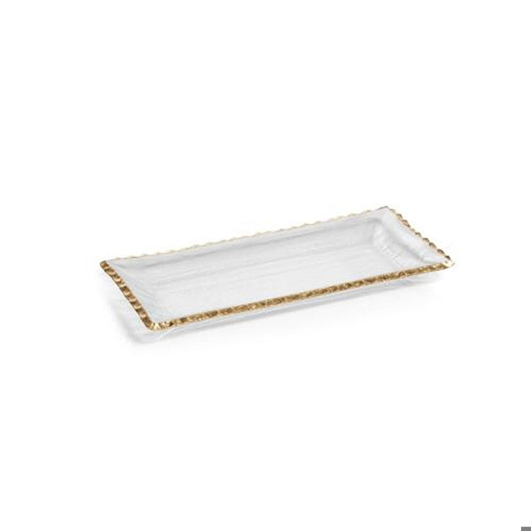 Textured Rectangular Tray w/ Jagged Gold Rim-14.5"