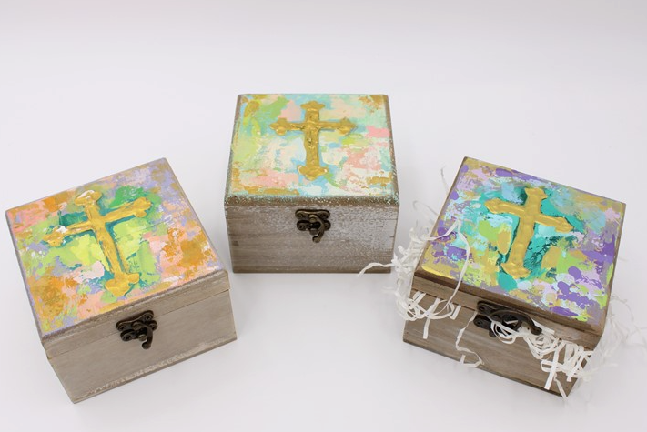 TradeCie Handpainted Cross Wood Box Sign Candice Boatright