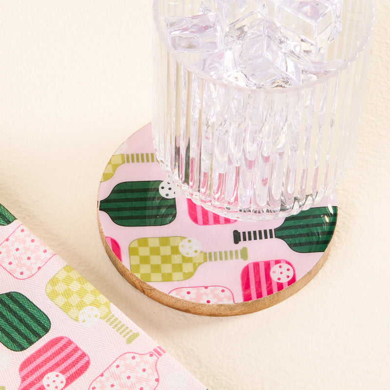 Wood Enamel Coaster-Pickleball Party