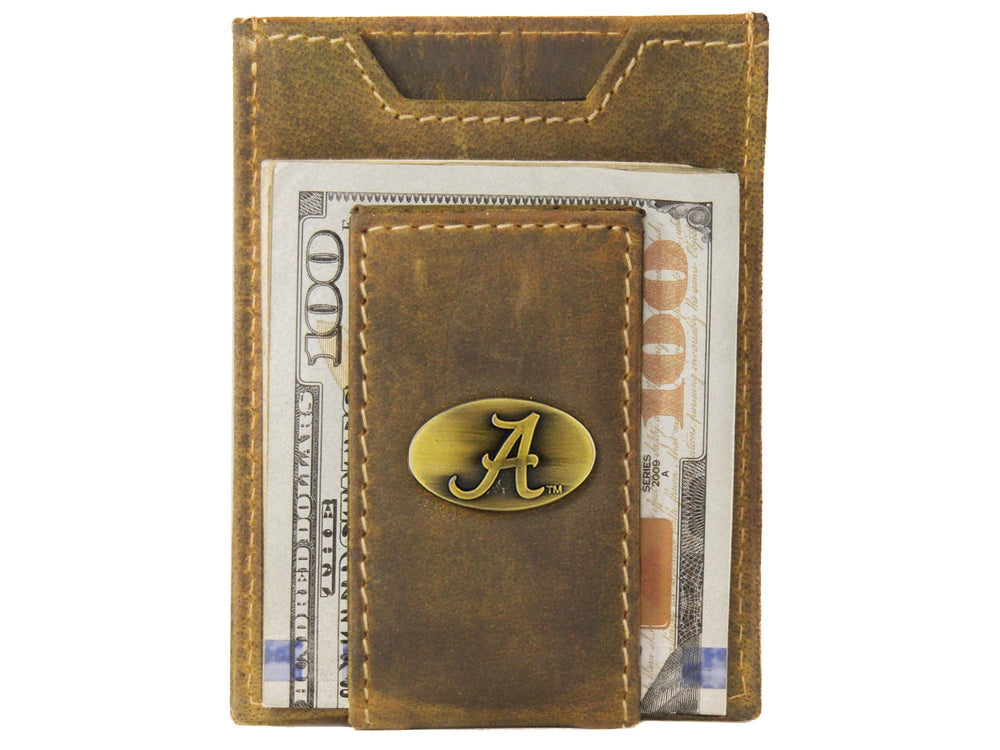 Zep-Pro - Alabama Crimson Tide Vintage Tan Leather Magnetic Front Pocket Wallet