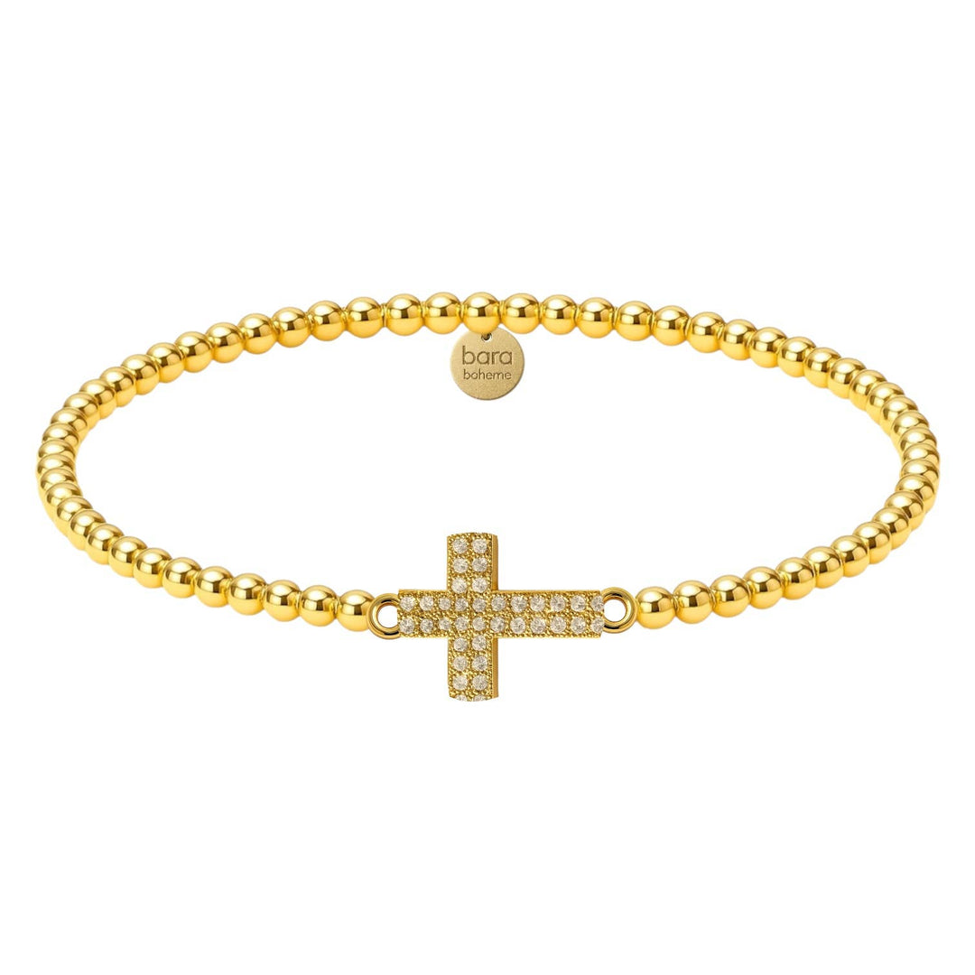 bara boheme - Esther Cross Charm | Gold Filled Beaded Bracelet: 14K Gold Filled beads / Stretchy 6.5"