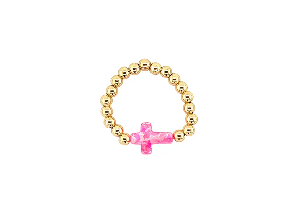 bara boheme - CROSS OPAL BRACELET: BUBBLE GUM / 14K Gold Filled / Stretchy 6.5"