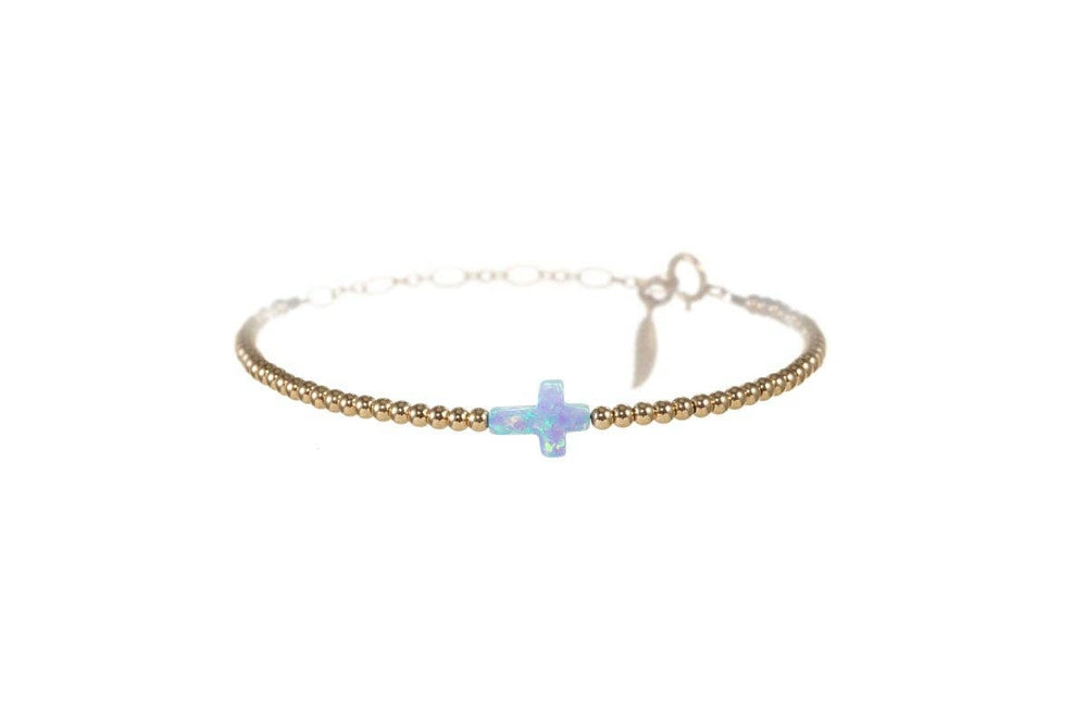 bara boheme - Cross | Beaded Opal Bracelet: Mint / Gold Filled / Stretchy 6.5"