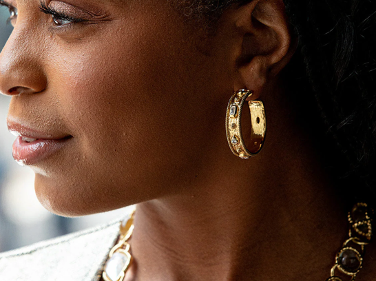 Berry Hoop Earrings- Clear Cubic Zirconia