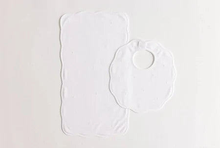 Bib & Burp Set - ecru embroidered dots