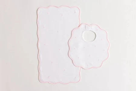 Bib & Burp Set - pink embroidered dots