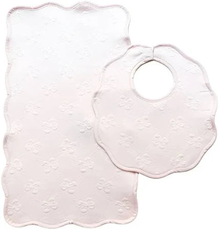 Bib & Burp Set - pink jacquard bows