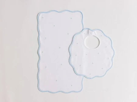 Bib & Burp Set - blue embroidered dots