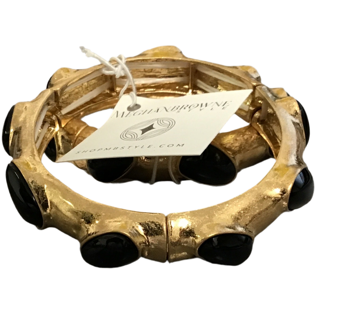 Bracelet - Faux Bead Hinged Bangle, Gold, WR