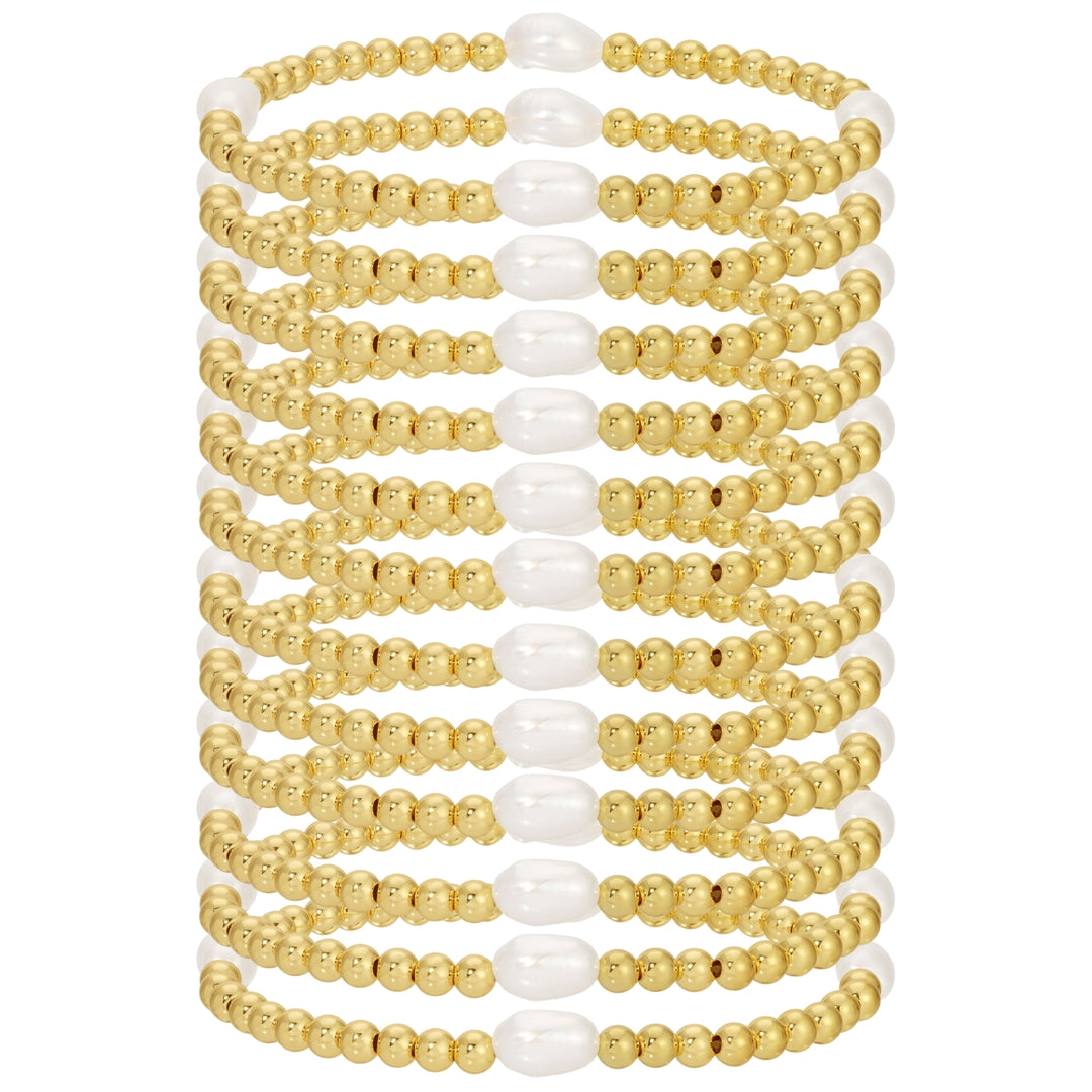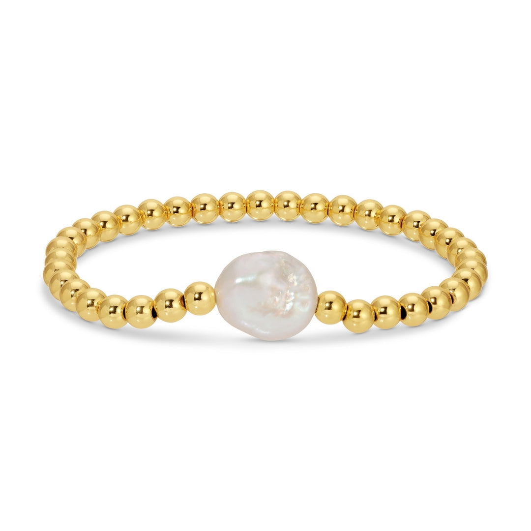 Bracelet - Patty, Miyuki Tila stretch bracelet, shiny white, Gold