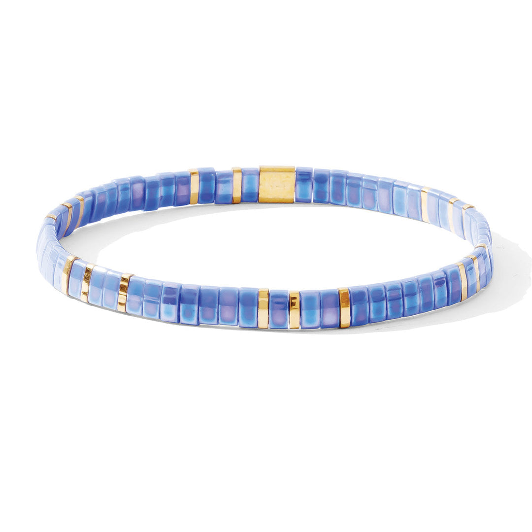 Bracelet - Nellie, Miyuki Tila stretch bracelet, shiny dark perwinkle, Gold