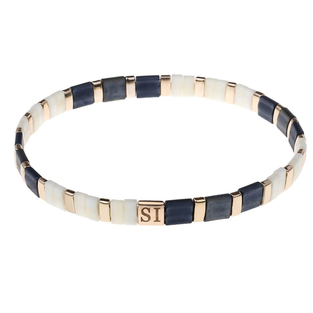 Bracelet - Nicole - Miyuki Tila stretch bracelet, Navy/White