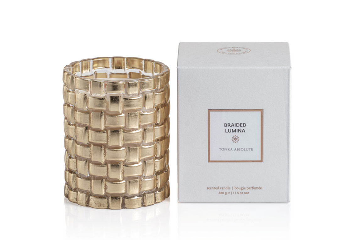 BRAIDED LUMINA SCENTED CANDLE, WOOD WICK 11.5 OZ- TONKA ABSOLUTE