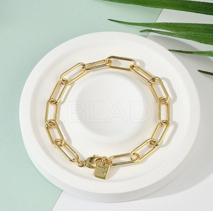 Brass Paperclip Chain Bracelets, with Lobster Claw Clasps, Long-Lasting Plated, Real 18K Gold Plated, 8-5/8 inch