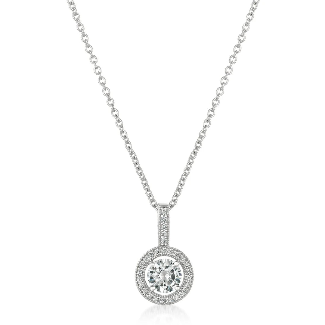 Brilliant Cut Halo Pendant Finished in Platinum